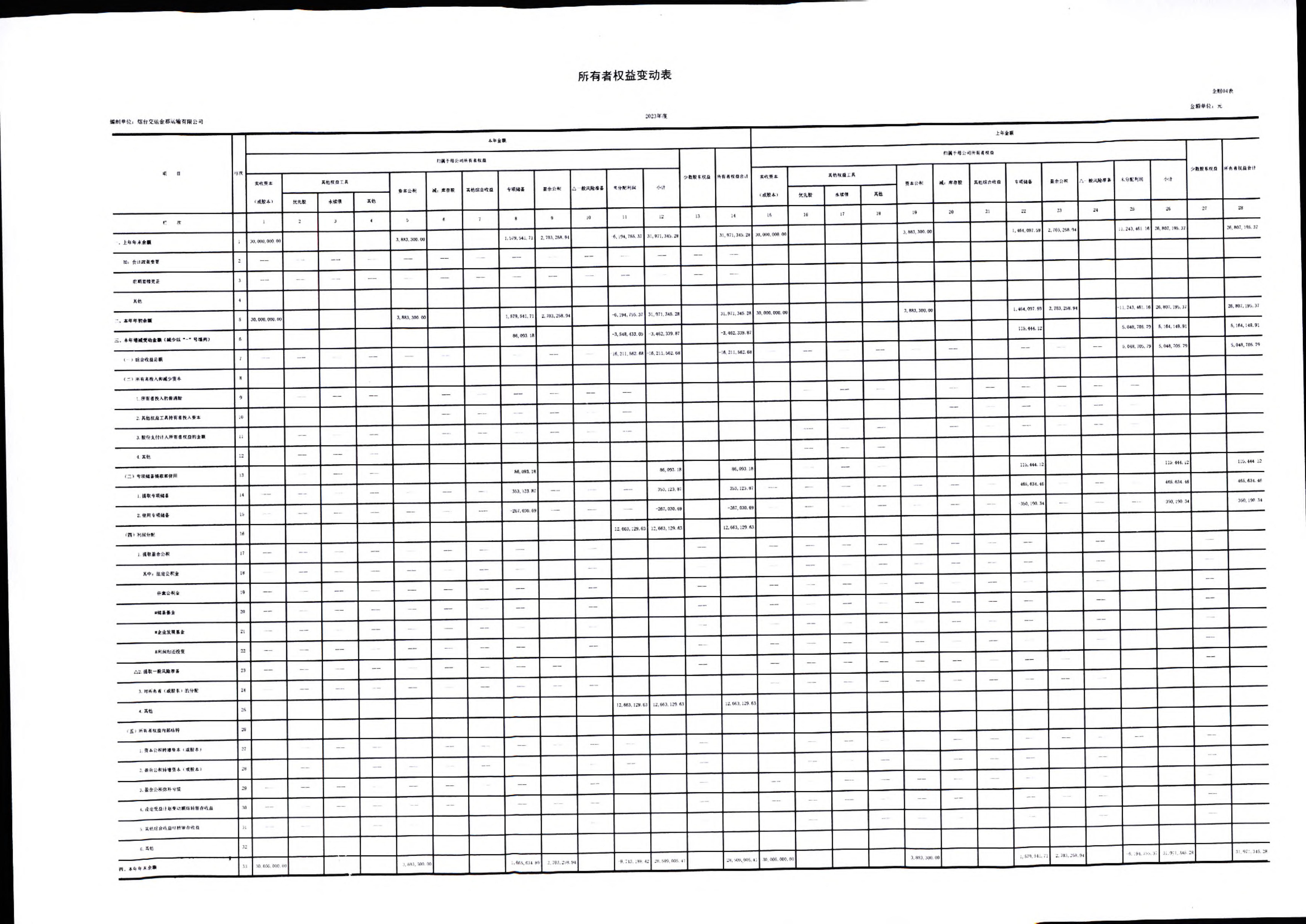 ? 2023年煙臺交運金都運輸有限公司主要財務狀況